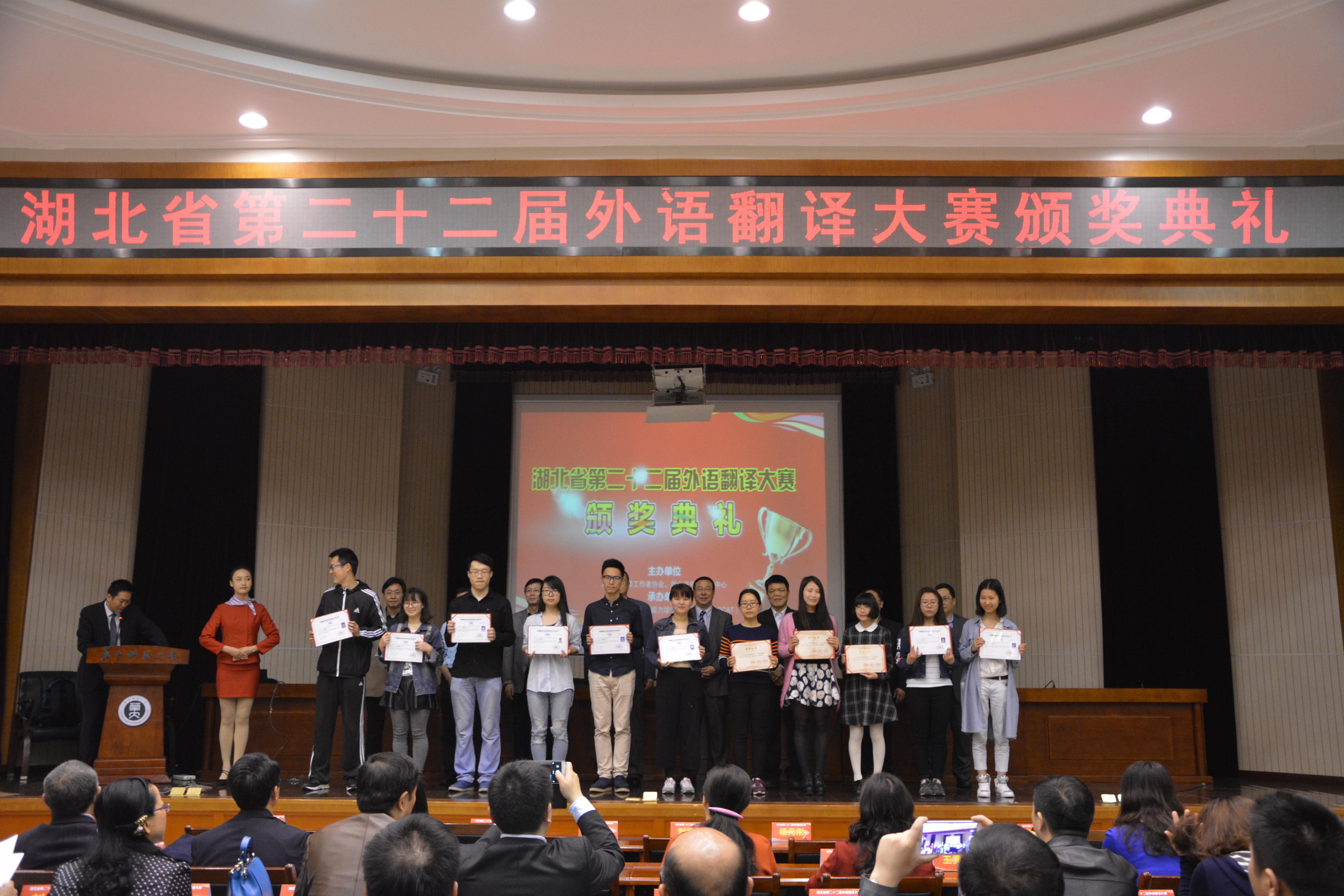 2016年4月9日上午,湖北省第二十二届外语翻译大赛颁奖典礼在华中师范大学科学会堂隆重举行。