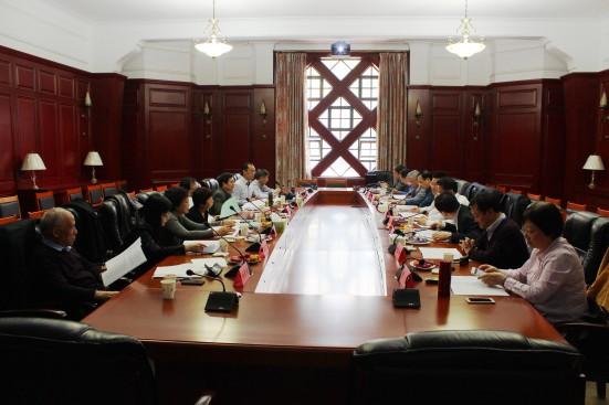2016年3月31日下午4点,教育部高等学校翻译专业教学协作组2016年工作会议在古朴典雅的武汉大学行政楼第一会议室举行。教育部高等学校翻译专业教学协作组主任、广东外语外贸大学校长仲伟合教授,协作组副主任、上海外国语大学高级翻译学院名誉院长柴明颎教授,协作组副主任、对外经济贸易大学王立非教授,协作组成员杨俊峰教授、平洪教授、刘和平教授、张文教授、王建开教授、刘军平教授、廖七一教授、李瑞林教授、李晶教授、李正栓教授,协作组学术顾问谢天振教授、穆雷教授、姜秋霞教授,广东外语外贸大学高级翻译学院院长赵军峰教授莅临此次会议。会议由协作组秘书长、广东外语外贸大学高级翻译学院平洪教授主持。