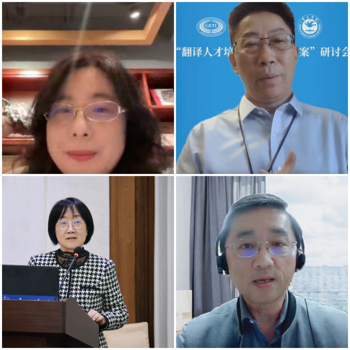 11月12日,由全国翻译专业学位研究生教育指导委员会(以下简称“全国翻译专业教指委”)与中国翻译协会联合主办、外交学院承办的“翻译人才培养的AI时代方案”研讨会以线上线下相结合的形式举办。中国翻译协会常务副会长、中国外文局原副局长兼总编辑黄友义,外交学院副校长孙吉胜,外交学院驻校外交官、外交部公使衔参赞、翻译司原司长许晖,上海外国语大学高级翻译学院院长、全国翻译专业教指委秘书长张爱玲出席会议。中国外文局翻译院副院长、中国翻译协会常务副秘书长邢玉堂,外交学院英语系主任冉继军主持会议。来自新华社、中央广播电视总台CGTN、中国日报社、中国对外翻译有限公司、传神语联网网络科技股份有限公司、世界知识产权组织等单位的业界代表,以及外交学院、中国政法大学、北京语言大学、上海外国语大学、广东外语外贸大学、香港浸会大学、澳门大学、英国巴斯大学、美国明德大学蒙特雷国际研究学院等国内外20余所高校的学界代表参加会议。